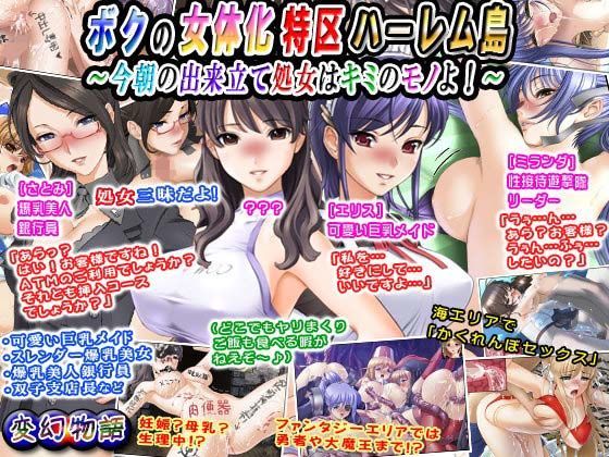 ○大富豪の爺ちゃんが作った女体化特区ハーレム島でもぎたて処女膜貫通! 島内の女達全員が女体化した元男!しかも処女ばかり! 現代エリアには巨乳メイドやブロンド巨乳美人、貧乳ポニテ眼鏡っ娘! さらにトップモデル級の爆乳美女や爆乳美人銀行員、双子まで様々! そしてファンタジーエリアでは!? ○はじまりの8ページ(無料版は文字有のみ) …